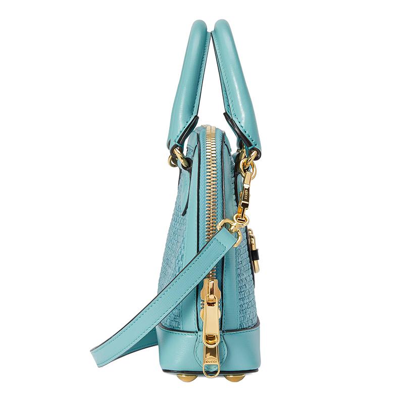 这款迷你手袋采用稻草效果织物制成的柔和淡蓝色调,在稻草效果质感材料中选择了充满活力的阴影,为整个Gucci Horsebit 1955系列带来了现代优雅的新定义。
