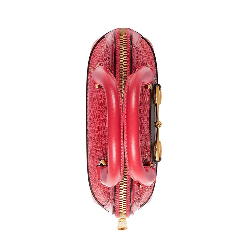 【包稅】GUCCI/古馳2021春夏新款Horsebit 1955系列女士迷你珊瑚草色稻草織物手提斜挎單肩包6407162VAAG6569