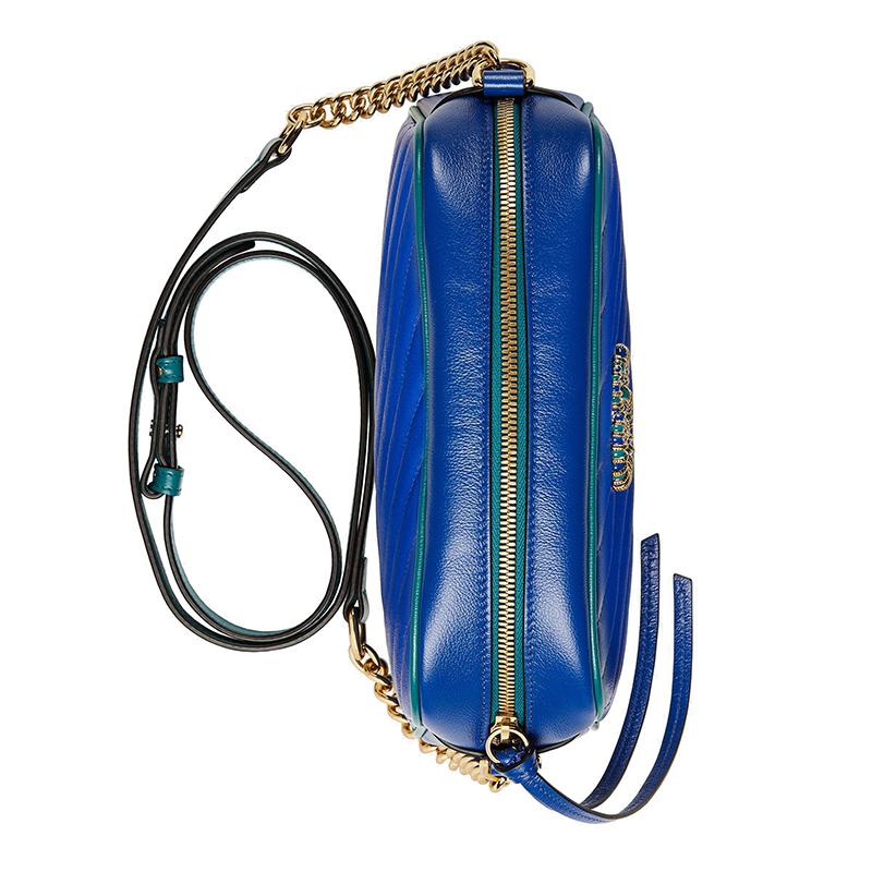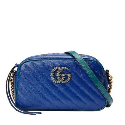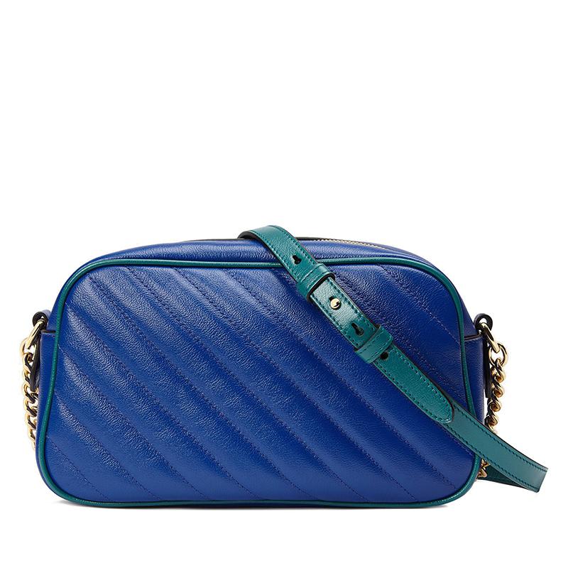 • 【包税】GUCCI/古驰 2021春夏新款 GG Marmont系列 女士小号蓝色和翠绿色皮革拉链珐琅双G单肩斜挎手提包4476321X5EG8382