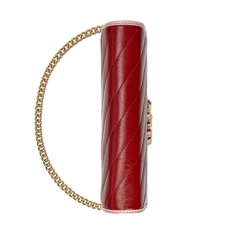 【包税】GUCCI/古驰 2021春夏新款 GG Marmont系列 女士红色和粉色皮革双G链式钱包5738071X5EG6476