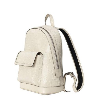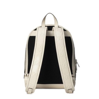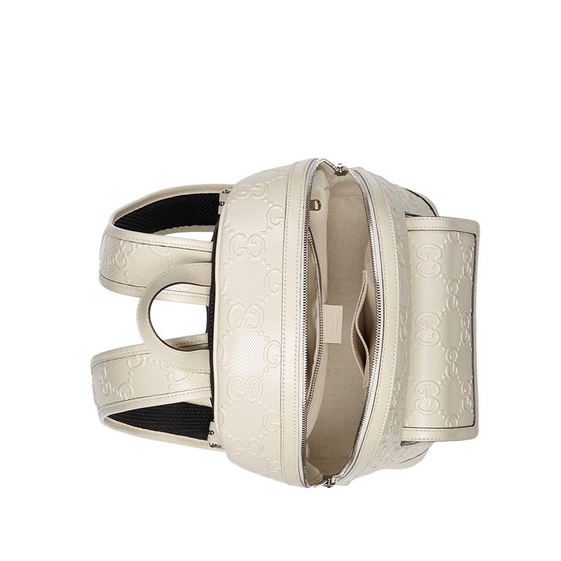 【包稅】GUCCI/古馳21新款GG embossé系列男女同款白色雙G壓紋皮革背包雙肩包6585791W3BN9099