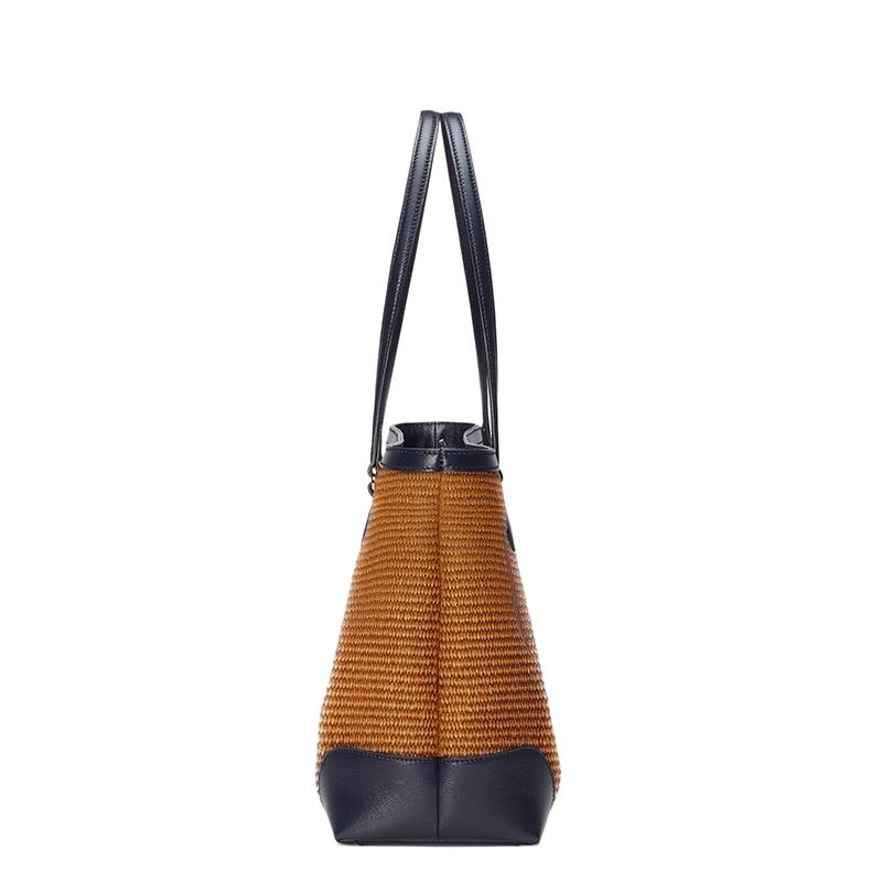 灵感来自稻草的材料为众议院具代表性的轮廓增添了些许精致感。Ophidia包采用中号手提袋形状。该品牌的网络乐队增强了驼色轮廓。