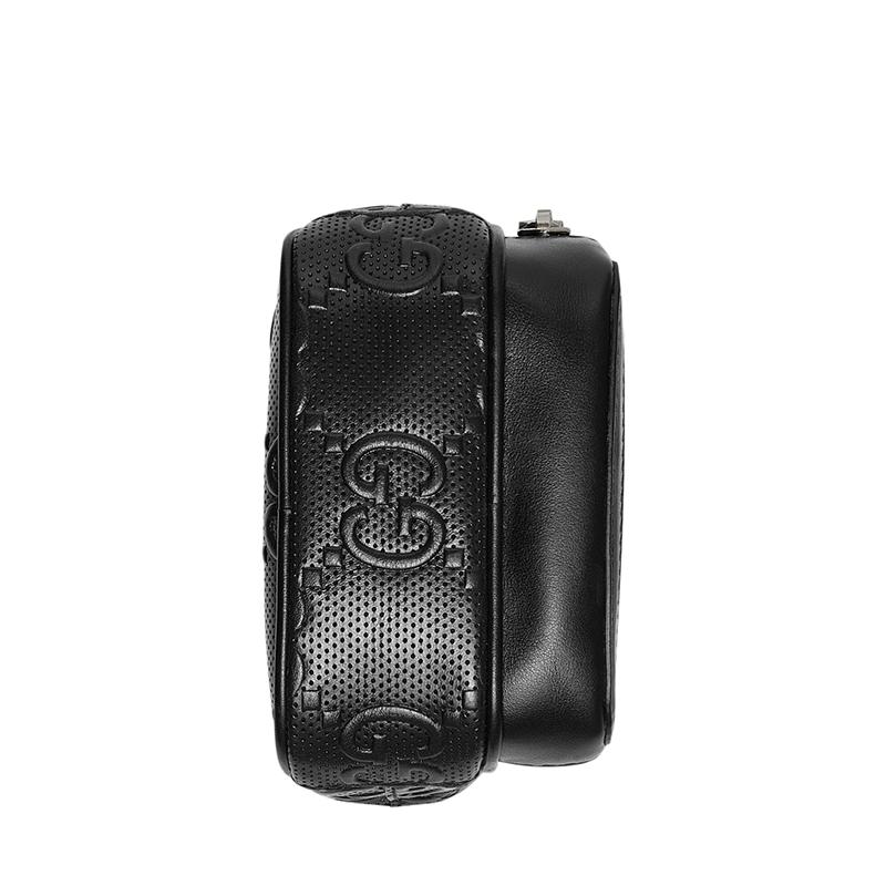 这款迷你包采用Opening系列新亮相的GG图案进行了全新诠释。GG皮革以其柔韧性和略带光泽的外观而著称。它具有质感,在黑色穿孔皮革底上凸显了Maison品牌的浮雕符号。