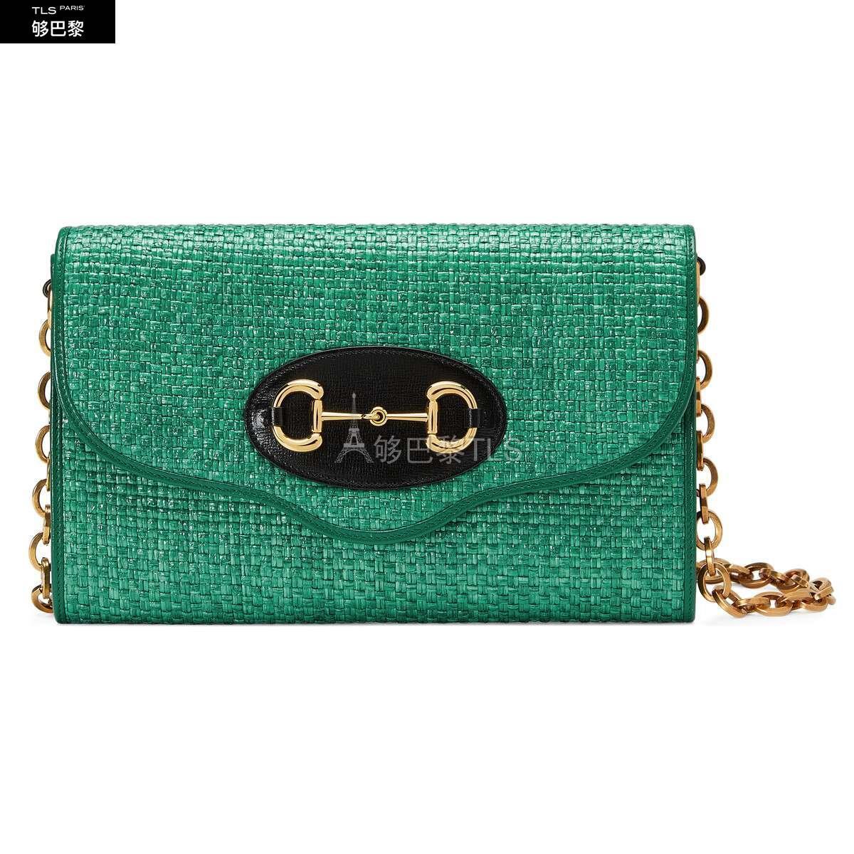 作为品牌古驰宠儿精*w*选的成*w*员,Gucci马衔扣1955系列不断推出更多实用百搭的混搭造型。这款手袋采用可拆卸滑链背带设计,可从肩背包轻松转换为手拿包。手袋上的金色调马衔扣配件饰有草编效果的翡翠色织物细节。