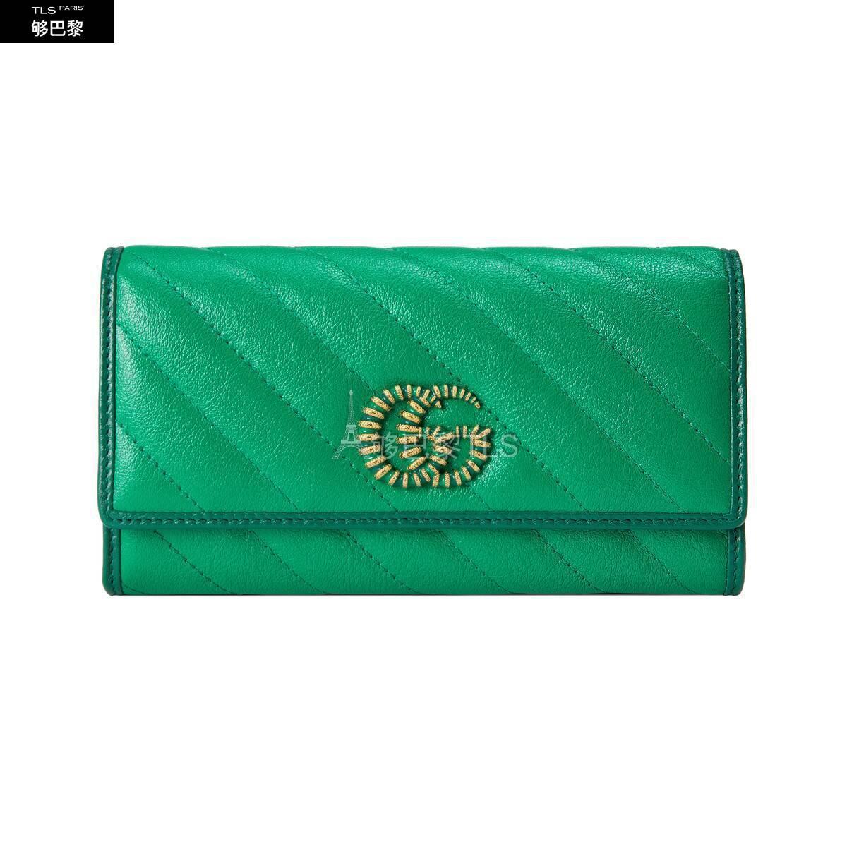 这款GGMarmont系列钱包采用绿色调绗缝皮革制作。饰有珐琅细节的标志性双G配件令整款设计更添魅力。