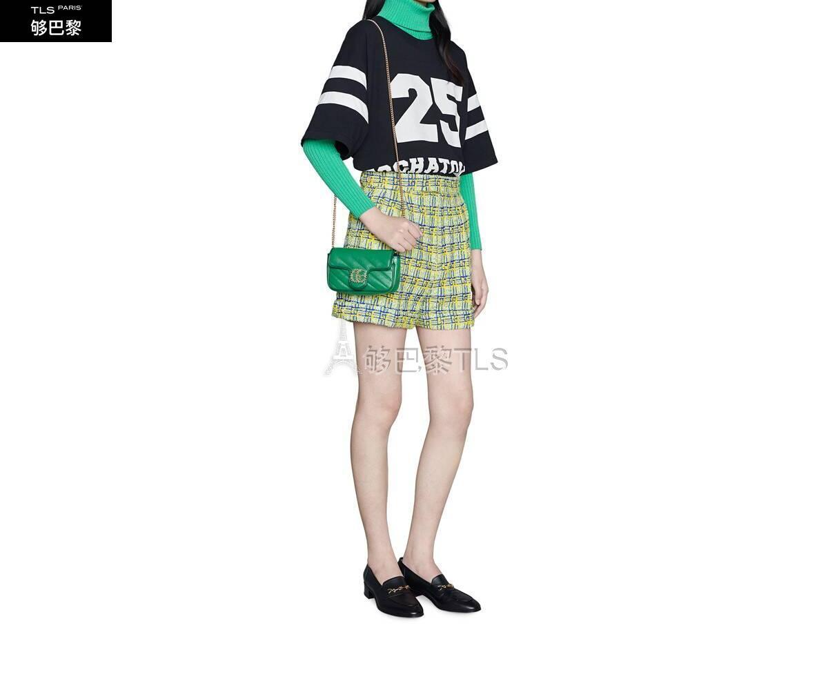 这款GGMarmont系列超迷你手袋采用绿色调绗缝皮革制作。饰有珐琅细节的标志性双G配件令整款设计更添魅力。迷你造型的经典款式在无边序曲系列中随处可见,突显了现代时尚气息。