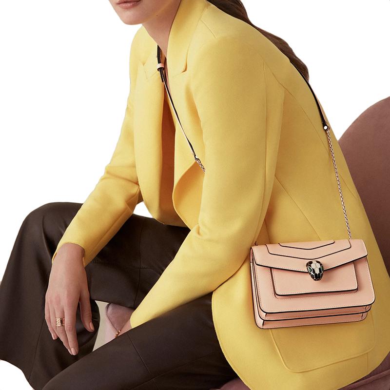 【包稅】BVLGARI/寶格麗2021春夏新款SERPENTI FOREVER系列女士小號桃紅色小牛皮黑白瑪瑙孔雀石眼睛經典扣單肩斜挎包290541