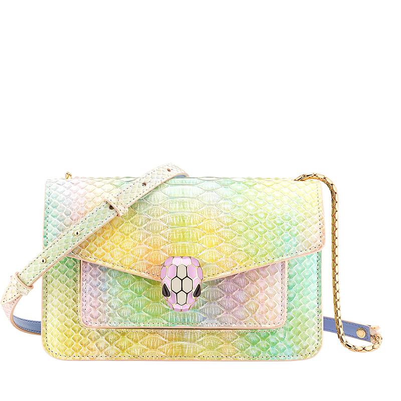【包稅】BVLGARI/寶格麗21春夏新款SERPENTI FOREVER系列彩色蟒蛇皮蛇頭扣斜挎單肩包290567