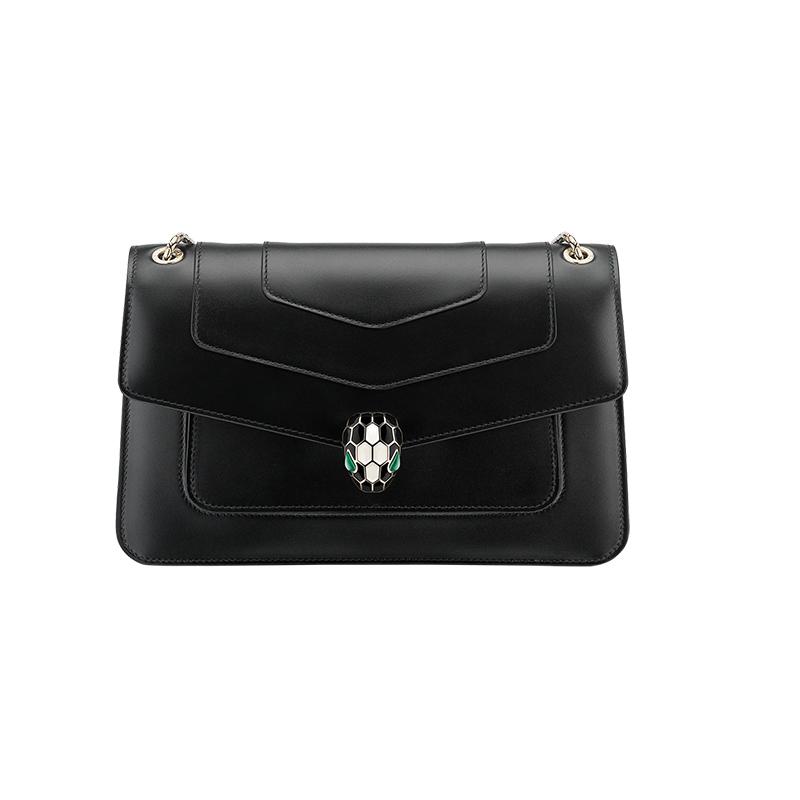 【包税】 BVLGARI/宝格丽 21春夏新款SERPENTI FOREVER系列 女士黑色小牛皮珐琅扣斜挎单肩包290264