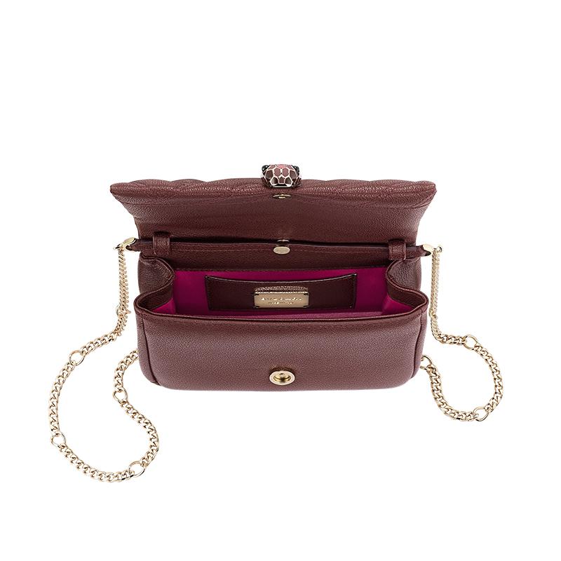 【包稅】BVLGARI/寶格麗21春夏新款SERPENTI FOREVER系列女士迷你波爾多紅小牛皮珐琅扣斜挎單肩包290648
