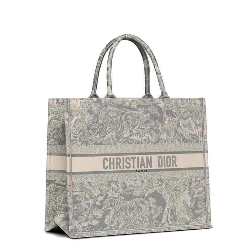 Dior Book Tote是Christian Dior艺术总监Maria Grazia Chiuri签名的原创作品,如今已成为经典之作。设计包含您所有的日常必需品,并完全绣有灰色的Toile de Jouy反向图案,通过倒立的配色方案使房屋的标志性图案衰落。正面的CHRISTIAN DIOR签名增强了该型号。这款手提袋是Dior专有技术的典范,可以手提或放在肩上。