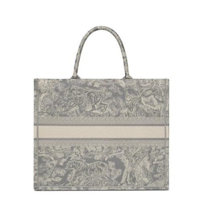【包稅】DIOR/迪奧21秋冬新款BOOK系列女士灰色Toile de Jouy圖案反向刺繡單肩手提托特包M1286ZRGO_M932