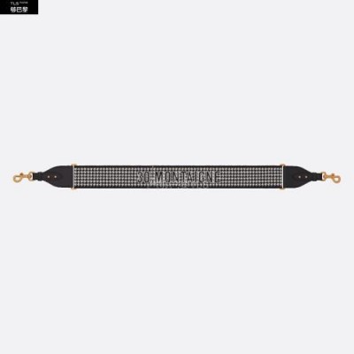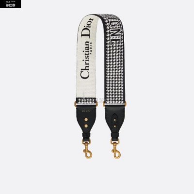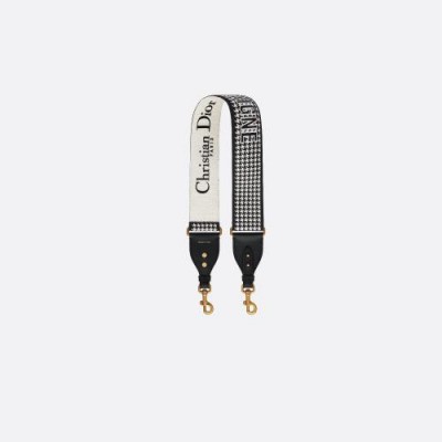 La bandouliere 30 Montaigne est issue de la ligne emblematique de la Maison. Son design tres visuel grace au motif pied-de-poule brode sur toute la largeur est rehausse de la signature "30 Montaigne". Chaque extremite est completee d’accents en cuir de veau noir ainsi que deux crochets a mousqueton en metal a finition or vieilli pour s’accrocher facilement au sac. Cette bandouliere noire et blanche se portera a l'epaule pour un style tres personnel.