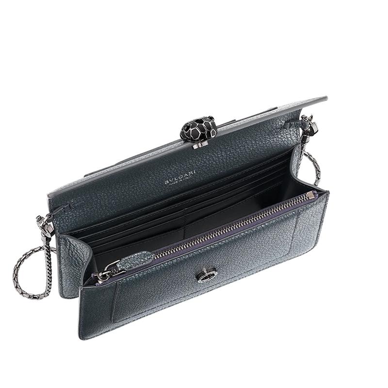 【包稅】BVLGARI/寶格麗2021春夏新款SERPENTI FOREVER系列女士灰色山羊皮黑色珐琅蛇頭扣鏈式錢包290850