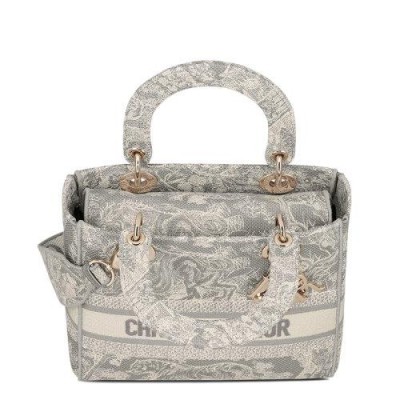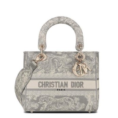 【包税】DIOR/迪奥 21秋冬新款LADY D-LITE系列 女士中号灰色Toile de Jouy图案反向刺绣单肩斜挎手提戴妃包M0565ORGO_M932