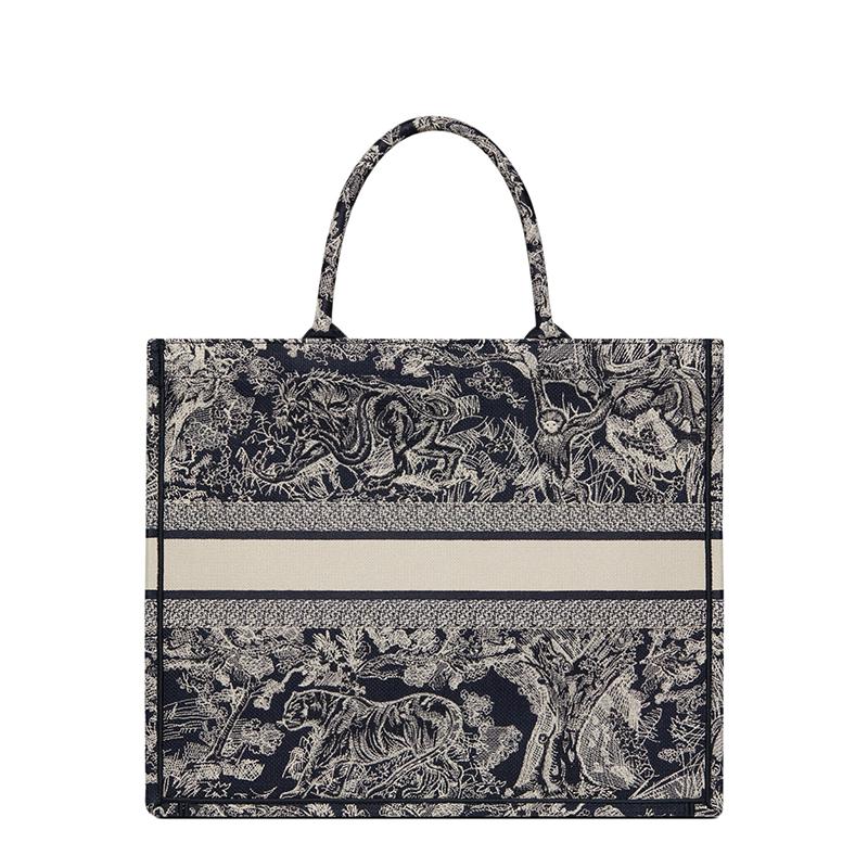 Dior Book Tote是Christian Dior艺术总监Maria Grazia Chiuri签名的原创作品,如今已成为经典之作。设计包含您所有的日常必需品,并完全绣有蓝色Toile de Jouy反向图案,通过反向配色方案降低了房屋的标志性图案。正面的CHRISTIAN DIOR签名增强了该型号。这款手提袋是Dior专有技术的典范,可以手提或放在肩上。