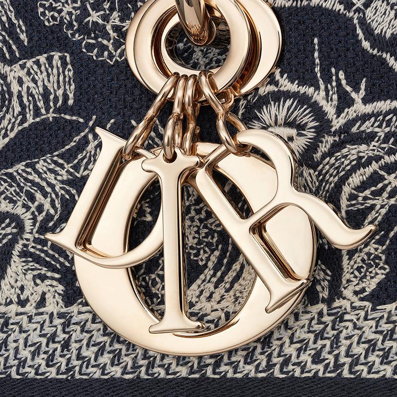 Lady D-Lite手提袋体现了经典优雅与Dior品牌现代感的结合。这款作品完全绣有蓝色Toile de Jouy反向图案,通过倒置配色方案降低了品牌的象征性图案。正面饰有CHRISTIAN DIOR签名,而厚实的DIOR浅金色金属饰物则增添并照亮其轮廓。这款Lady D-Lite中号手提袋带有大号刺绣,可翻转和可拆卸的肩带,可以手提在肩上或斜挎包上。