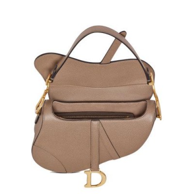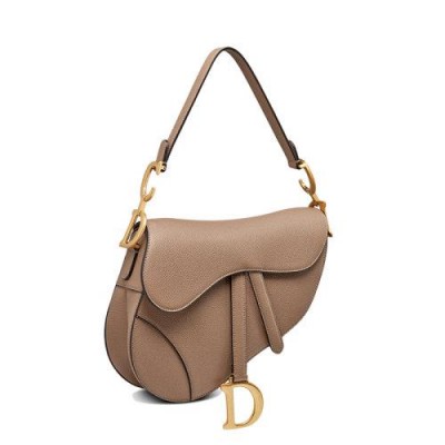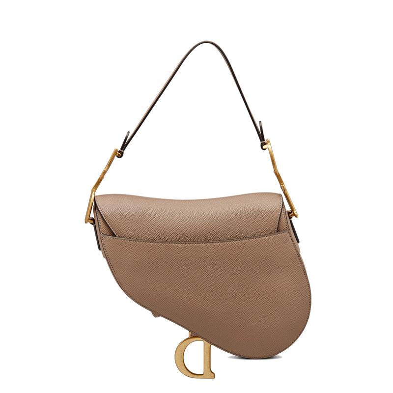 标志性的马鞍包由Maria Grazia Chiuri带来。这个传奇的设计带有一个带磁性D型马cl扣的鞍形翻盖,以及手柄两侧的CD签名。灰褐色的粒面小牛皮在陈旧的金色金属中得到了增强。该马鞍包既可以手提也可以背在肩上,并可以使用不同的肩带进行个性化设置。