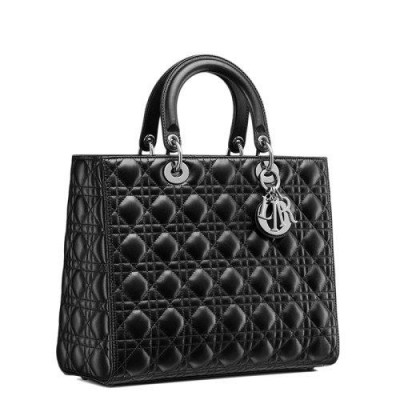 Lady Dior手提包体现了Dior家居优雅和美丽的景象。精致而女性化,这种永恒的创作仍然流行。它采用Cannage缝线的黑色小羊皮制成,其texture缝纹理可立即识别。DIOR钌金饰物带来优雅气息。这款大号Lady Dior手提袋配有可拆卸的细皮革皮带,可以手提在肩上或斜挎包上。