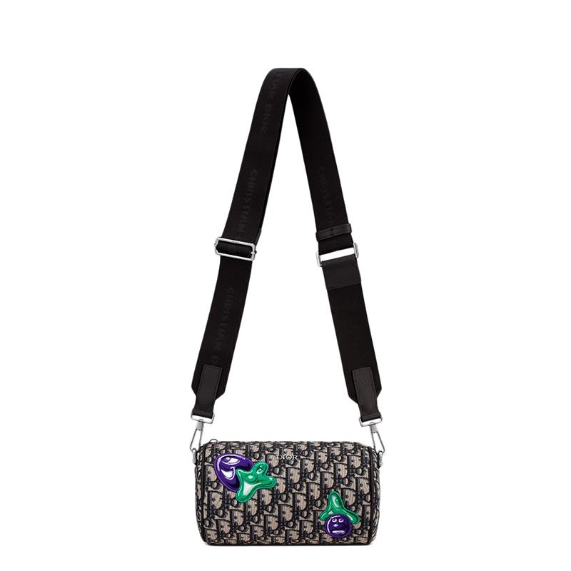 【包税】DIOR/迪奥 21秋冬新款ROLLER系列 男士米色黑色老花帆布KENNY SCHARF联名图案印花斜挎单肩滚筒包1ESPO061UAU_H10E