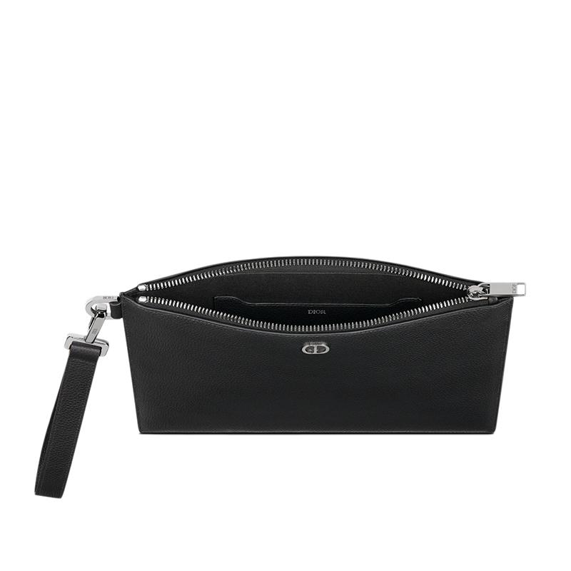 A4袋是一款精致轮廓的单品。黑色粒面小牛皮制成,正面饰有钌金黄铜CD Icon签名。它的拉链隔层有一个平口袋,可容纳您的持卡人。凭借其可移动的皮革表带,该小袋既可以手提携带,也可以滑入袋中。