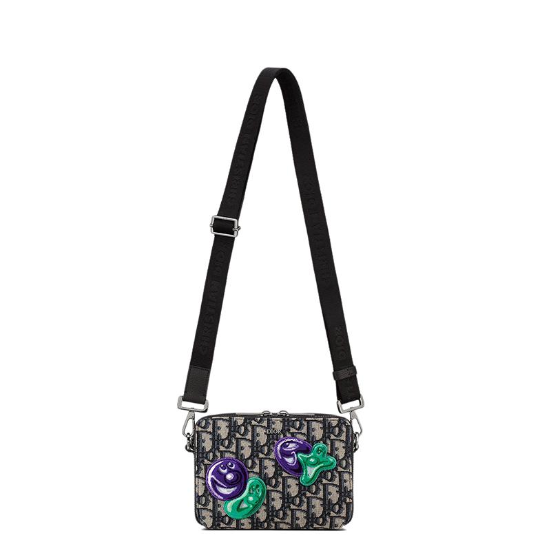 【包税】DIOR/迪奥 21秋冬新款 男士米色黑色老花帆布KENNY SCHARF联名图案印花单肩斜挎手拿相机包2ESBC119UAU_H10E