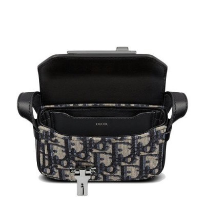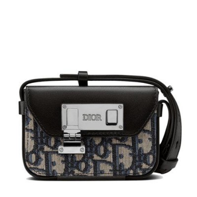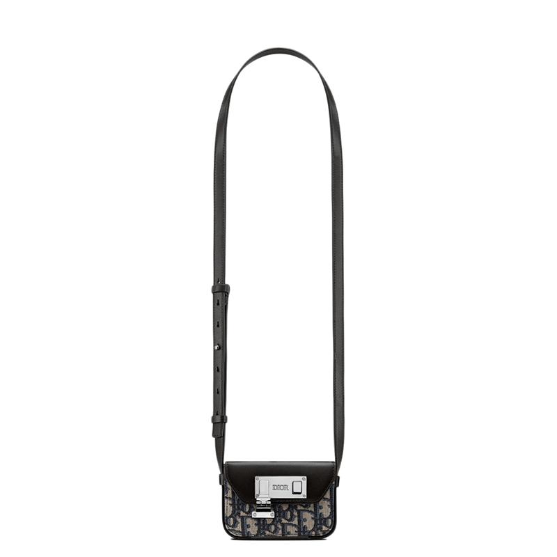 【包税】DIOR/迪奥 21秋冬新款 男士NANO米色黑色老花帆布黑色光滑小牛皮翻盖银扣单肩斜挎包2LXCA344UCT_H28E