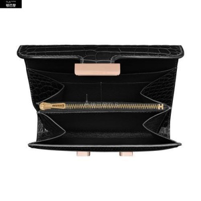 Portefeuille compact en alligator Mississippiensis lisse, bijouterie plaquee or rosea l'interieur : un porte-monnaie avec fermeture a glissiere, deux poches cartes de credit et une poche platea l'exterieur : une poche plateFabrique en France