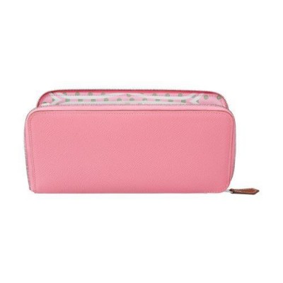Portefeuille combine en veau Epsom et veau Barenia, double en twill de soie imprime « Brides de gala fantome a pois », fermeture a glissiere argentee palladiee.A l'interieur: une poche monnaie zippee, quatre poche*es et douze poches cartes de credit