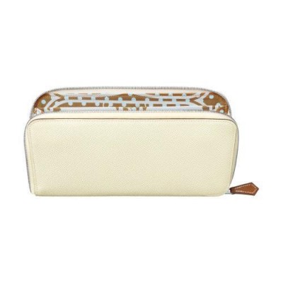 Portefeuille combine en veau Epsom et veau Barenia, double en twill de soie imprime « Brides de gala fantome a pois », fermeture a glissiere argentee palladiee.A l'interieur: une poche monnaie zippee, quatre poche*es et douze poches cartes de credit