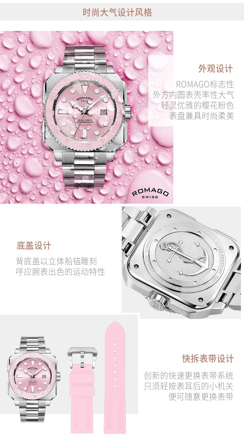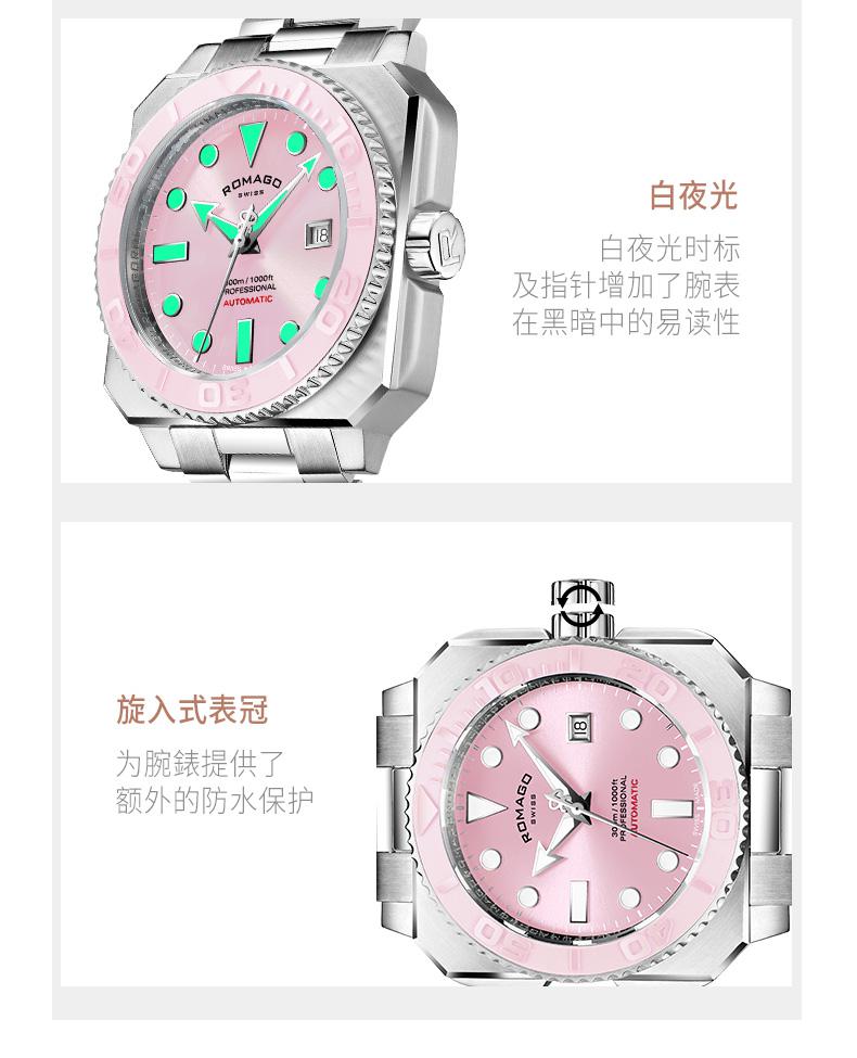 ROMAGO/雷米格深潜者300全自動機械潛水表女士鋼帶腕表RM109-SVPK