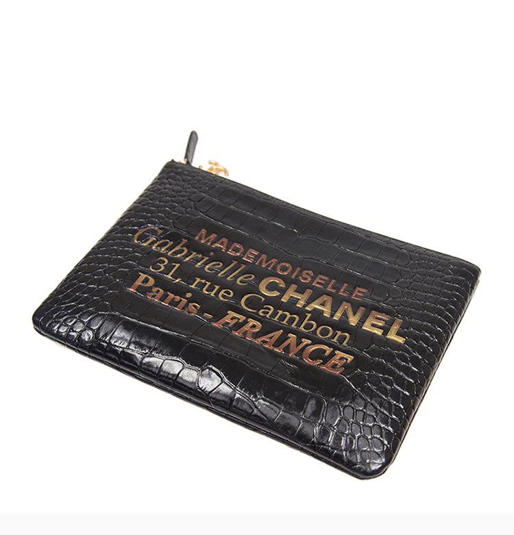 首頁 > 箱包配飾 > 香奈兒 > Chanel/香奈兒20春夏中性黑色仿鱷魚皮金扣手拿包