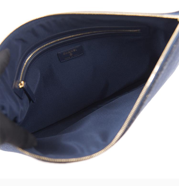 【包稅】Chanel/香奈兒女士藍色經典logo標識帆布手拿包