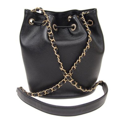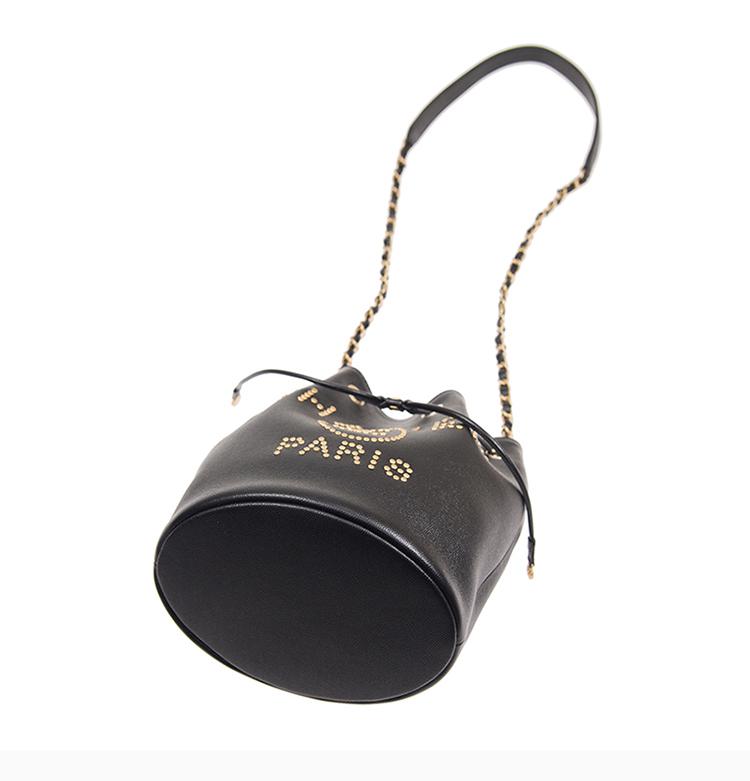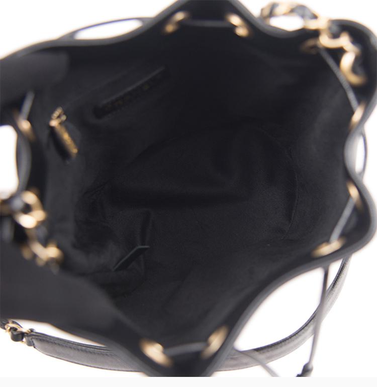 【包税】Chanel/香奈儿 20春夏  女士黑色牛皮金扣经典logo装饰单肩包斜挎包水桶包