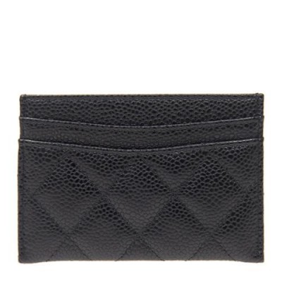 【包税】Chanel/香奈儿 女士经典菱纹黑色牛皮logo标夹层卡包卡片夹