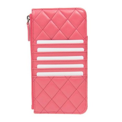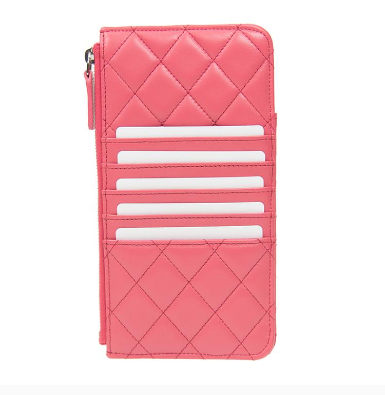 CHANEL/香奈兒女士牛皮魚子醬金屬LOGO菱形長款拉鍊女士手拿包