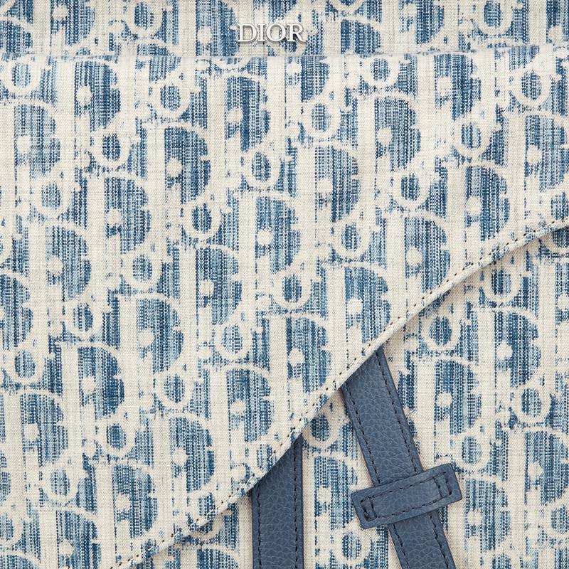 【包税】DIOR/迪奥 2021春夏新款 SADDLE SOFT系列 男士蓝色Dior斜纹Kasuri提花帆布可调节肩带手提斜挎包1ADHO022UTK_H00E