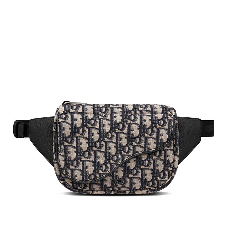 Saddle腰包是一款时尚实用的单品。这款表款采用米色和黑色Dior斜纹提花帆布制成,并采用黑色粒面小牛皮细节进行了改进,在正面配有标志性线条的磁性翻盖袋以及大号拉链隔层。尼龙提花皮带和带扣的克里斯汀·迪奥(Christian Dior)签名完成了这款包,可以在腰部或作为斜挎包穿着。