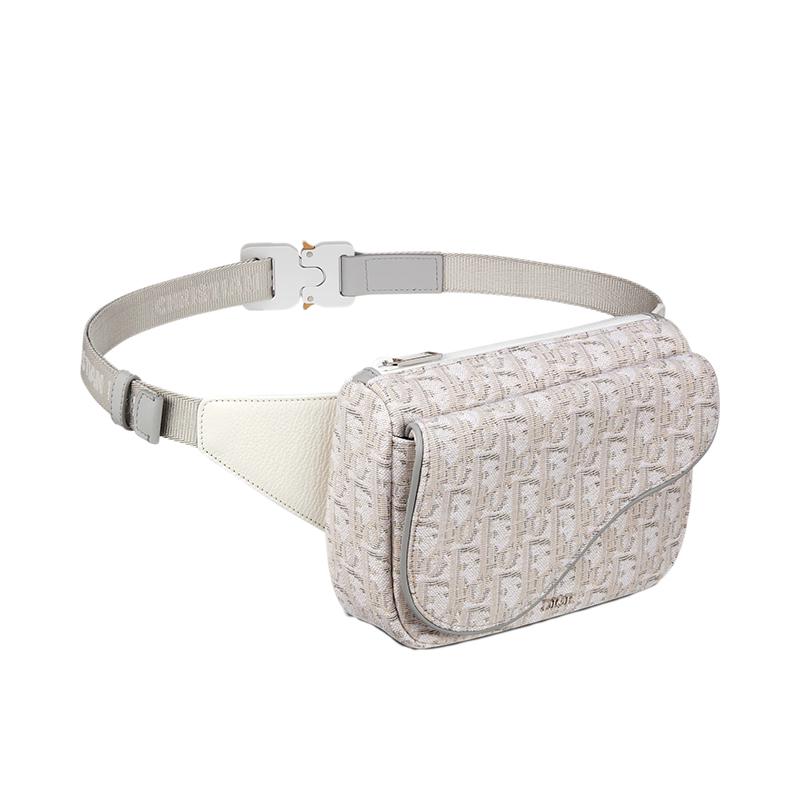 【包稅】DIOR/迪奧21春夏新款SADDLE系列男士灰白色斜紋提花帆布米白色粒面小牛皮磁性翻蓋腰包斜挎包1ADPO223YIE_H07E
