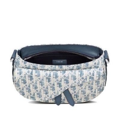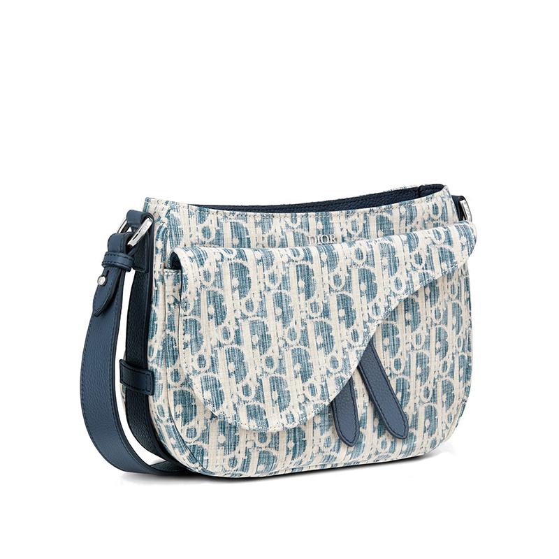 【包稅】DIOR/迪奧2021春夏新款SADDLE SOFT系列男士迷你藍色斜紋Kasuri提花帆布拉鍊開合可拆卸手柄單肩斜挎手提包1ADHO024UTK_H00E