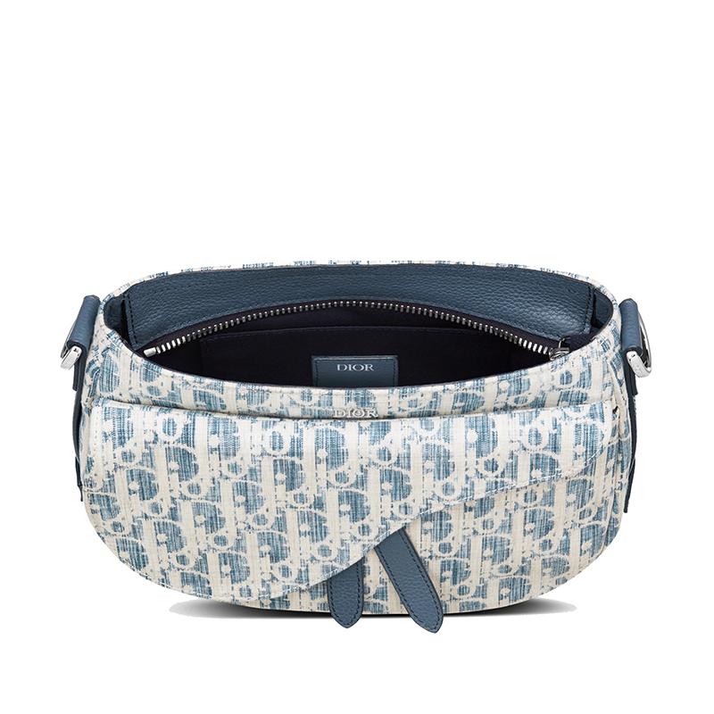 【包税】DIOR/迪奥 2021春夏新款 SADDLE SOFT系列 男士迷你蓝色斜纹Kasuri提花帆布拉链开合可拆卸手柄单肩斜挎手提包1ADHO024UTK_H00E