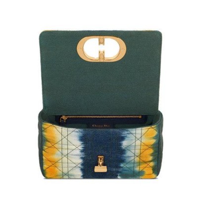 【包税】DIOR/迪奥 2021春夏新款 CARO系列 女士小号五彩绿水洗牛仔布翻盖CD扣链条单肩斜挎手提包M9241UJAL_M042