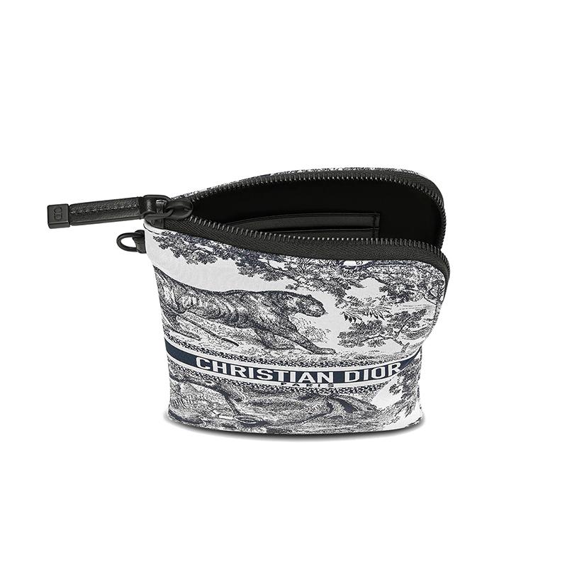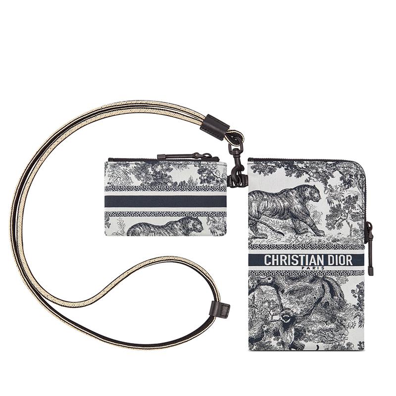 DiorTravel多功能离合器是蓝色技术面料的混合产品,展示了标志性的Toile de Jouy图案。它由两个可分离的拉链元素组成。小口袋可存放钥匙或找零,而更宽敞的口袋可存放电话。可拆卸的束带可以斜挎在脖子上,也可以单独放入袋子中。