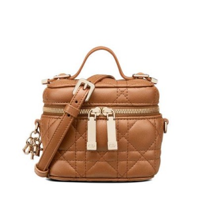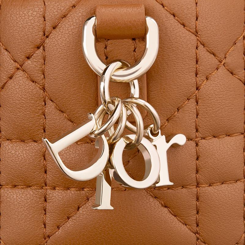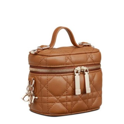 Lady Dior虚荣心本季有微型尺寸。Cannage明线缝制和可拆卸的DIOR魅力增强了白兰地色小羊皮制成的手感。它的拉链开合打开后会进入主隔层,该隔层可容纳您的必需品。这款梳妆台非常适合日常使用,并且由于其手柄和可拆卸的肩带,可以用手托在肩膀或斜挎包上。