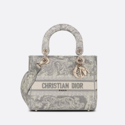 Le sac Lady D-Lite incarne l'elegance classique alliee a la modernite de la maison Dior. Cette creation est entierement brodee du motif Toile de Jouy Reverse grise, declinant le motif emblematique de la Maison a travers un jeu de couleurs inversees. L'avant est ponctue de la signature CHRISTIAN DIOR, tandis que les epais charms D.I.O.R. en metal dore pale rehaussent et illuminent sa silhouette. Dote d'une large bandouliere brodee, reversible et amovible, ce sac Lady D-Lite medium pourra etre porte a la main, a l'epaule ou crossbody.