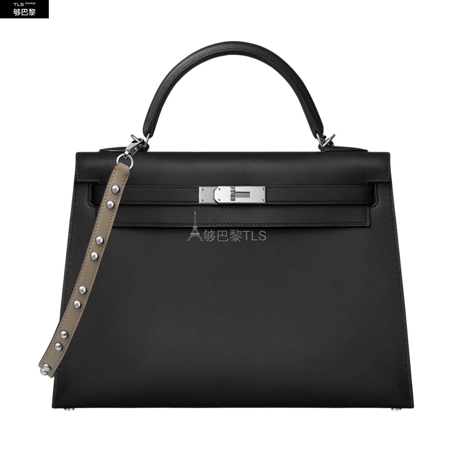 Bandouliere en veau Swift, bijouterie argentee palladiee, grand mousqueton Bandouliere convenant aux modeles Kelly et Bolide