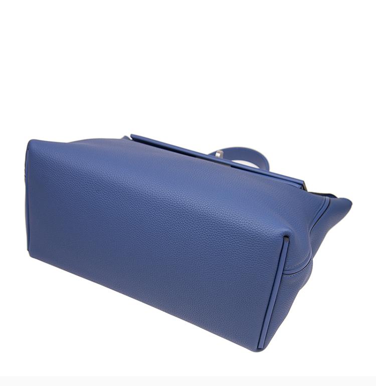 HERMES/愛馬仕女士藍色牛皮金屬銀扣手拎包手提包手包女包242435CMAATG