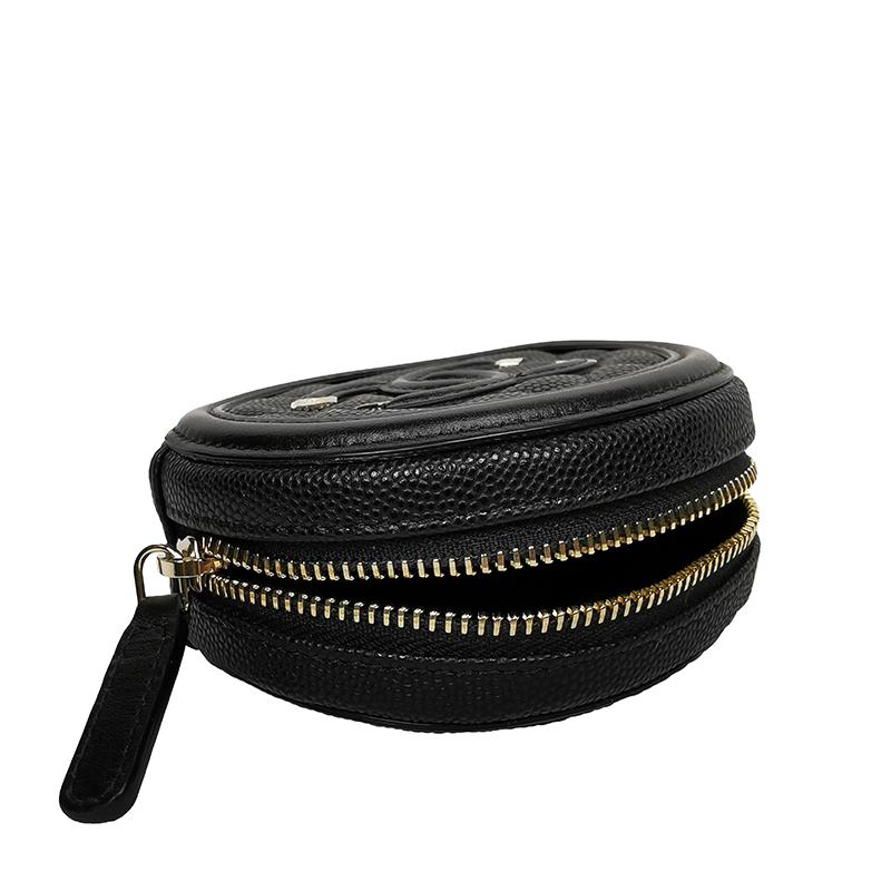 首頁 > 箱包配飾 > 香奈兒 > 【包郵包稅】CHANEL/香奈兒經典黑色魚子紋小牛皮雙C縫紋拉鍊圓形零錢包