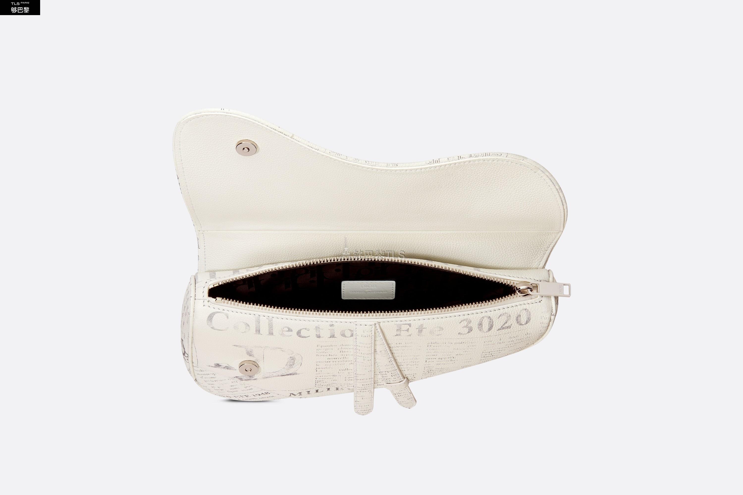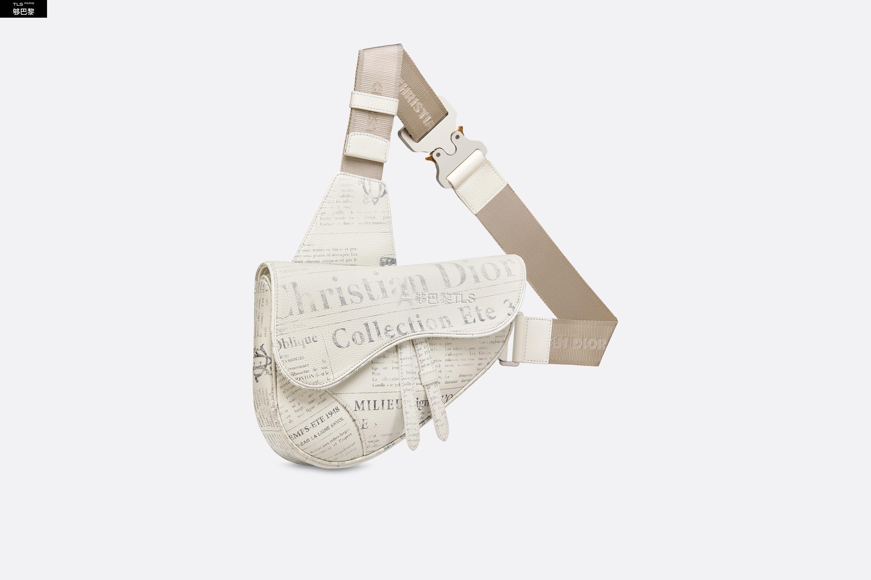 这款白色粒面牛皮革马鞍包将 DIOR AND DANIEL ARSHAM 合作款的时尚姿态与复古的报纸印花结合,向 Dior 的约翰·加里亚诺时代致敬。可调节“Christian Dior”提花图案肩带饰以工业风的铝扣,典型的马鞍包造型彰显这件单品的经典外观。内部隔层设计,可收纳手机、钱包、耳机等日常用品。