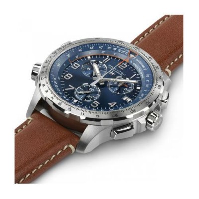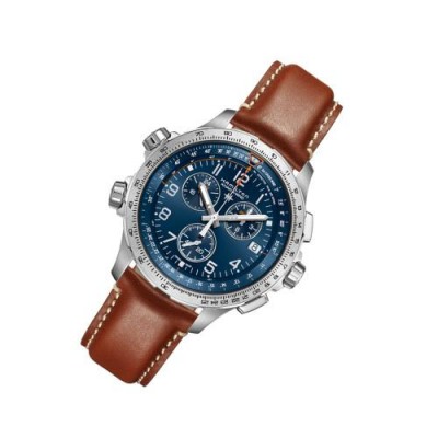 Hamilton/汉米尔顿瑞士手表 卡其航空系列石英男表 46mm蓝盘皮带 H77922541